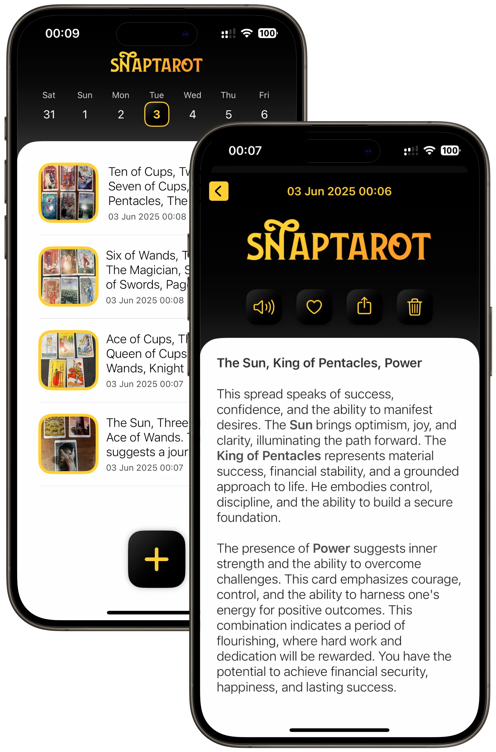 SnapTarot is an intelligent app that recognizes and interprets Tarot spreads using your iPhone's camera. Simply take a photo to discover what the cards reveal about your day.